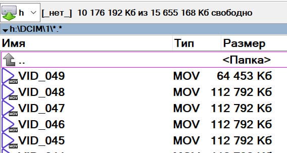 Во время записи регистратор разбивает материал на отрезки заданной длительности, так поступают все регистраторы, записывающие в режиме «по кругу». Материал сохраняется в одну папку с именем DCIM.