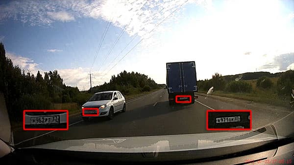Чуть другой эффект мы увидим в стоп-кадре, взятом из видео, снятого на скорости повыше, около 70 км/ч. В этом случае кодек справляется похуже, хотя изображение все еще остается различимым.