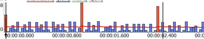 Битрейт в записи распределяется по ключевым (I) и промежуточным (P) кадрам. Двунаправленные (B) кадры в потоке отсутствуют.