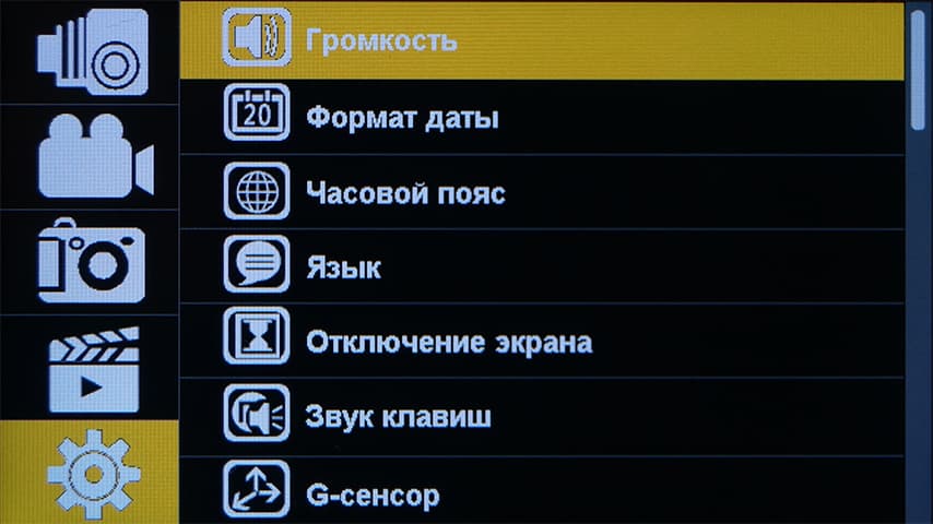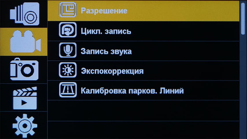 Общее количество параметров можно назвать скромным. Например, в видеонастройках отсутствует возможность выбора баланса белого и прочих киношных вкусностей. Но ведь это же хорошо! Регистратор и не должен их иметь, по определению. Находясь за рулем, водитель должен следить за дорогой, а не за качеством картинки регистратора.