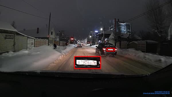 Ночью ситуация осложняется не только на дорогах, но и в видеозаписи, что совершенно естественно. Любой движущийся объект в такой съемке имеет некоторую степень смаза, она зависит от скорости перемещения объектов в кадре. Это объясняется длинной выдержкой, которую регистратор устанавливает автоматически.