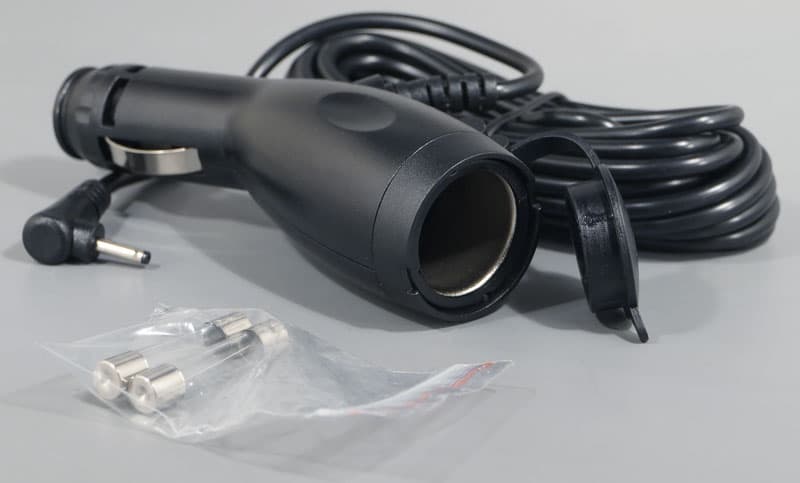 Прилагаемый адаптер прикуривателя снабжен наружным сквозным гнездом прикуривателя. Он, в свою очередь, прикрыт резиновой крышкой-заглушкой, предупреждающей попадание пыли и других загрязнений.