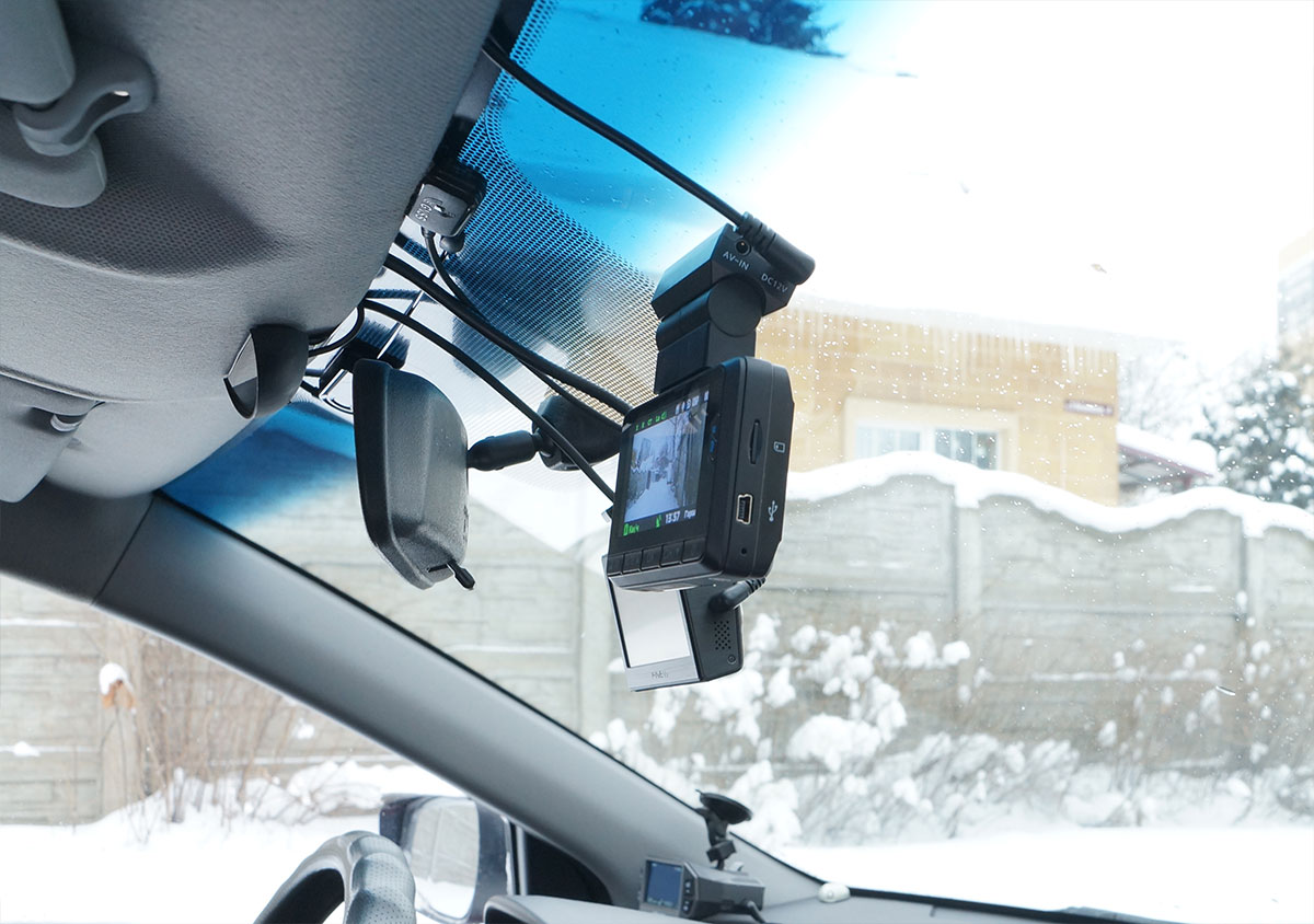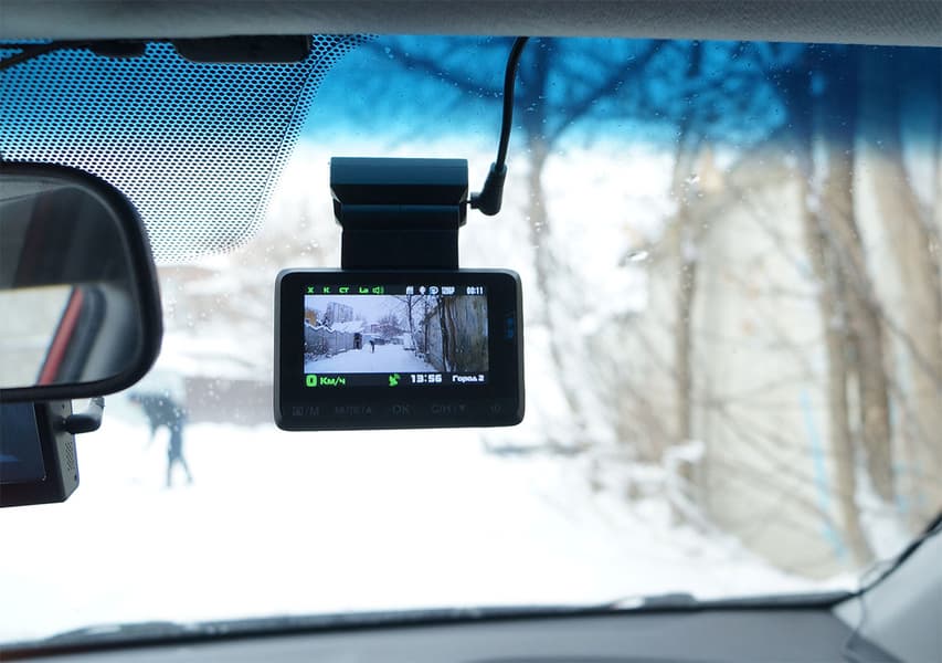 Приклеенный к стеклу рассматриваемый регистратор ничего не выдает, определить его наличие снаружи практически невозможно, разве что на просвет. В отличие от «штатного» упоминавшегося регистратора, который «палится» своей металлической окантовкой объектива.