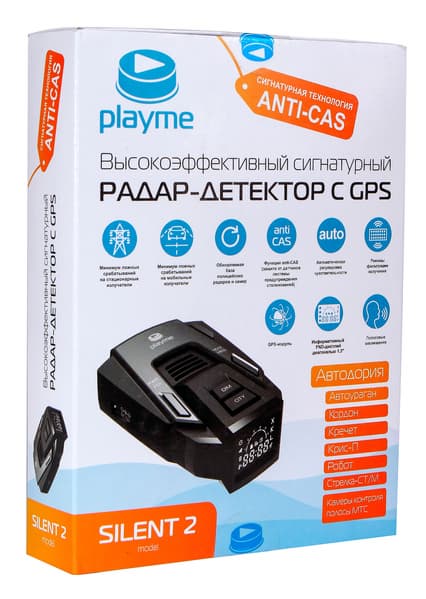 Серия Playme Silent недаром так названа: благодаря сигнатурной технологии распознавания этим радар-детекторам удается отфильтровать максимально возможное количество помех и ложных срабатываний — вследствие чего бо́льшую часть времени этот прибор действительно молчит.