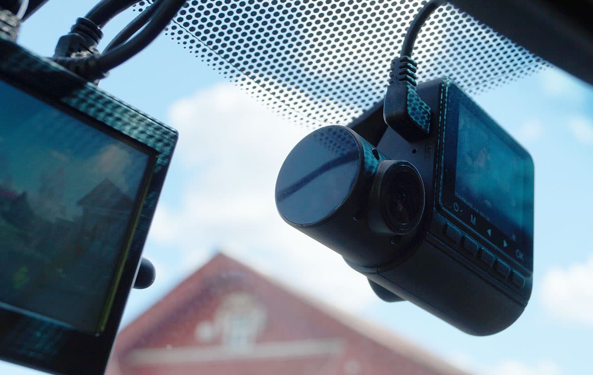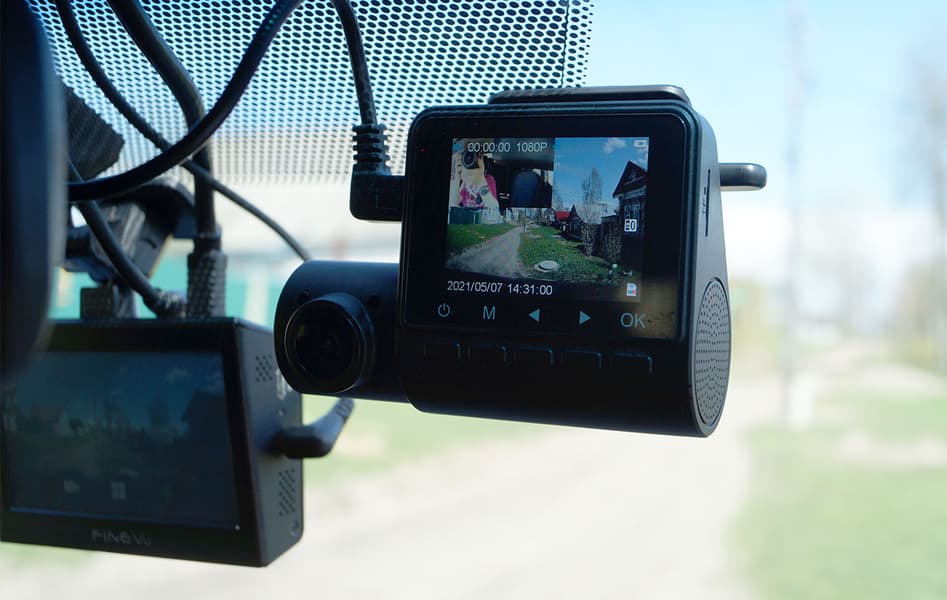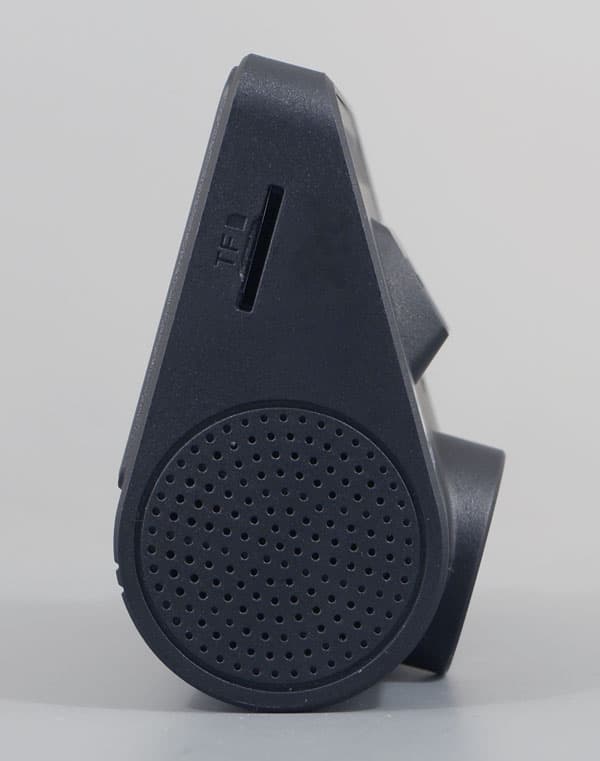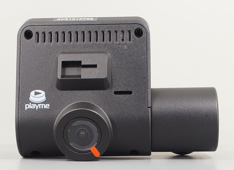 Основной объектив, направленный вперед по ходу движения автомобиля, не имеет регулировки наклона. Но этого и не требуется, ведь крепежная площадка имеет такой механизм. В отличие от основной камеры, второй объектив встроен во вращающуюся часть корпуса — выступающий слева цилиндрик. Диапазон наклона этой камеры составляет около 90 градусов. Такой большой диапазон позволит наклонить камеру в пол или вообще задрать в потолок.