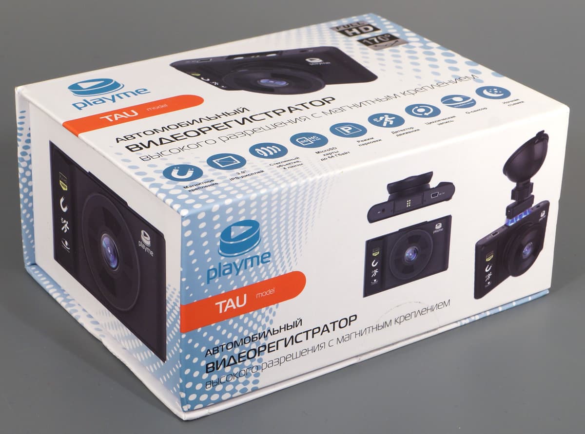 Регистратор упакован в прочную многослойную коробку с напечатанной исчерпывающей информацией о регистраторе. Вообще, в плане информации у компании Playme — более чем хорошо. Бесценно, когда приобретаешь гаджет, основываясь не на слухах или блогерских «анпакингах», а на всеобъемлющем описании, которое производитель не стесняется выложить на сайте, напечатать в руководстве и на упаковке. Это редкое нынче обстоятельство постепенно уходит в историю, а жаль.