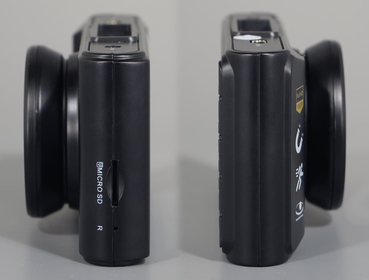 Левая сторона корпуса содержит слот для карты памяти формата micro SD/SDHC/SDXC объемом до 64 ГБ, рядом со слотом находится отверстие со скрытой под ним кнопкой сброса/перезагрузки устройства. Эта кнопка за время тестирования ни разу не потребовалась — софт регистратора несложен и не склонен к зависаниям.