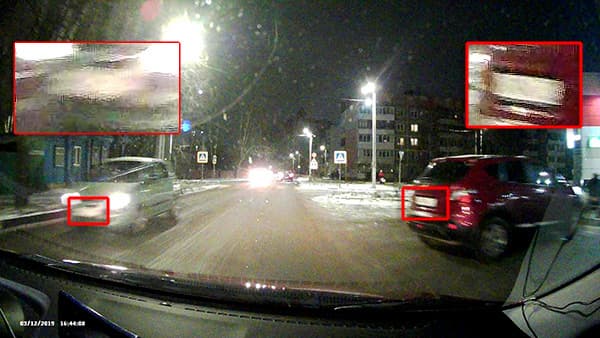 К сожалению, особенности сжатия одним из самых неэффективных кодеков (MJPG) не дают возможности реализовать весь потенциал сенсора, который и без того невелик. Эти особенности заключаются в классической шероховатости и пикселизации, которые являются визитной карточкой неаккуратного JPG, где не применяется межкадровое сжатие. Номер, находящийся достаточно близко, еще попадает в «сетку разрешения» MJPG, но стоит номеру отдалиться, как он превращается в спонтанную мешанину рваных пикселей, которую невозможно идентифицировать.