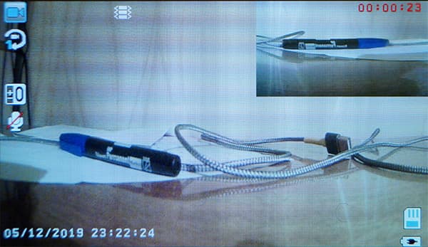 Такая разрешающая способность характерна для «полноформатных» Full HD-видеокамер и фотоаппаратов среднего ценового сегмента — в общем-то, неплохой результат. Разрешающую способность дополнительной камеры, которую мы подключили к видеовходу регистратора, измерять нет смысла — она аналоговая и дает типичный для древних камер PAL-сигнал, который ужимается в размеры 640×480.