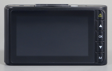 Управление регистратором осуществляется пятью механическими кнопками. Верхней кнопкой отключается дисплей, длительное нажатие этой же кнопки блокирует текущий видеоролик от перезаписи. Кнопки со стрелками нужны для навигации по служебному меню. Включение/выключение устройства и принудительное отключение/включение записи производится центральной кнопкой OK, а нижняя кнопка переключает режимы и открывает меню настроек.