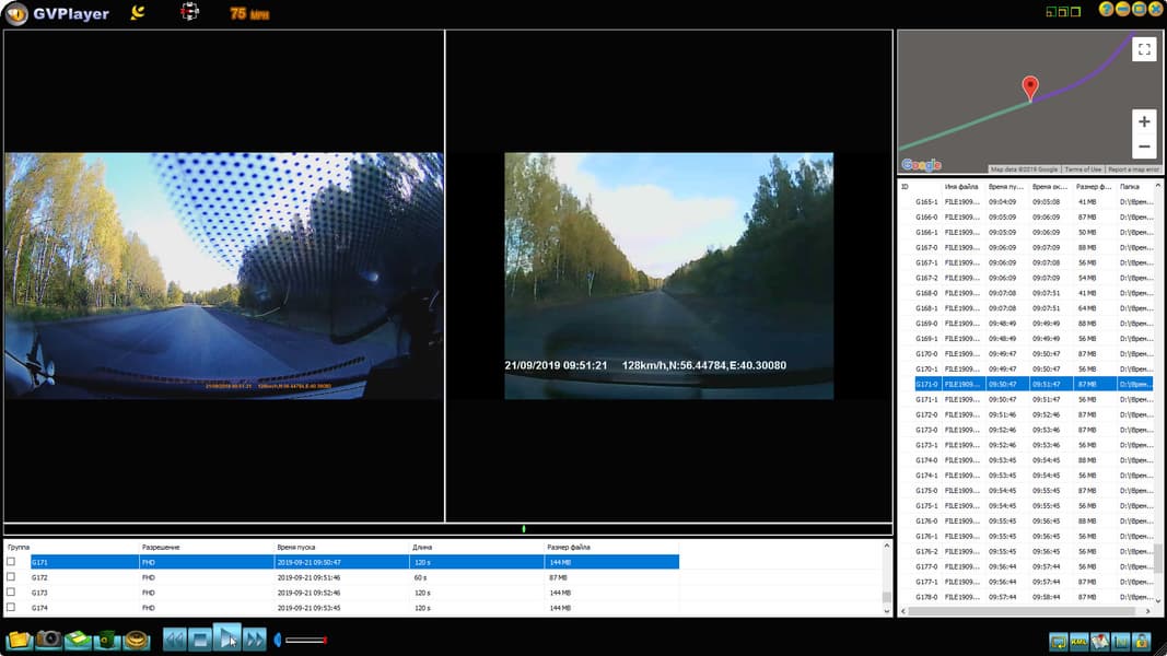 Программа для ПК, в которой предлагается просматривать записи с карты памяти, называется GVPlater. Видно, что изготовлена программа на одном общеизвестном открытом движке. При воспроизведении выбранного файла программа автоматически отображает видео со второй камеры, но стоп-кадр можно сделать только с основной камеры, главной.