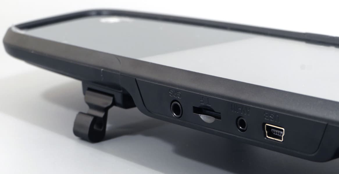 Верхняя грань корпуса отведена разъемам и интерфейсам: Mini-USB, видеовход для подключения второй камеры, слот для карты памяти microSD и разъем для подключения вынесенного GPS-модуля.