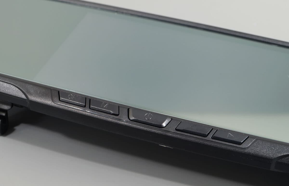 Управление прибором осуществляется с помощью 5 кнопок, все они находятся ниже зеркала. Назначение кнопок интуитивно понятно, а расположение удобно. Однако вопрос: зачем они дребезжат? На любой дороге, даже относительно ровном асфальте, от зеркала исходит постоянный еле слышный стрекот. Причем дзинькает не одна кнопка, и даже не каждая кнопка в отдельности. Дребезжит весь блок кнопок. Целиком. Определить источник звука очень просто: достаточно легонько прижать пальцем любую кнопку, и бренчание прекращается.