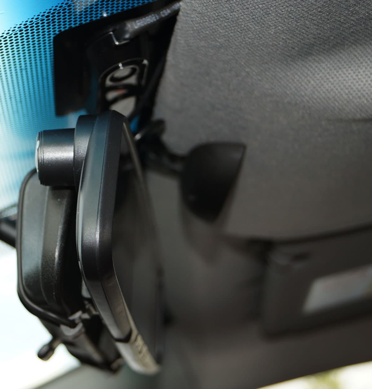 Наконец, третья недодумка в конструкции регистратора. Речь об этих пластиковых ушках, которые, по всей видимости, должны охватывать штатное зеркало сверху и снизу.