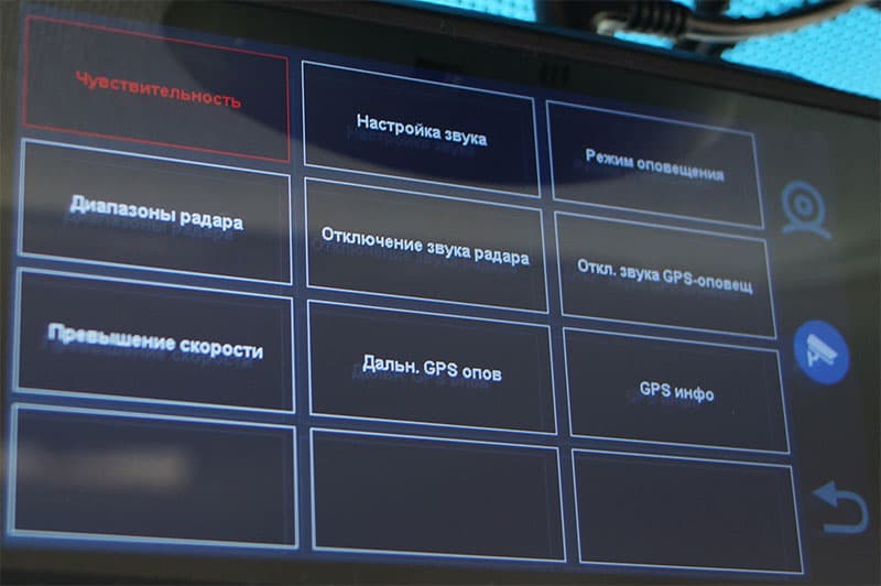 Настройки регистратора разбиты на три категории: настройка радар-детектора и оповещений, системные параметры и настройки основной камеры. Доступные в настройках пункты прозрачны и не требуют пояснений.