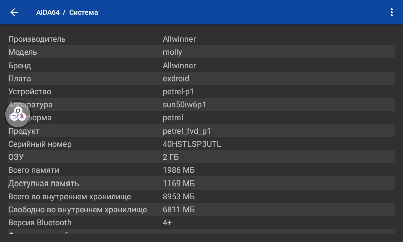 Объем оперативной памяти составляет 2 ГБ, объем хранилища — 16 ГБ. Устройство работает под управлением ОС Android версии 7.0.