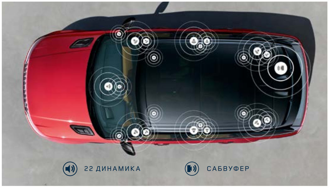 Наряду с базовой версией клиенты могут выбрать одну из трех передовых аудиосистем британской компании Meridian: 380W, 825W и 1700W Signature с 12, 18 и 22 динамиками соответственно.