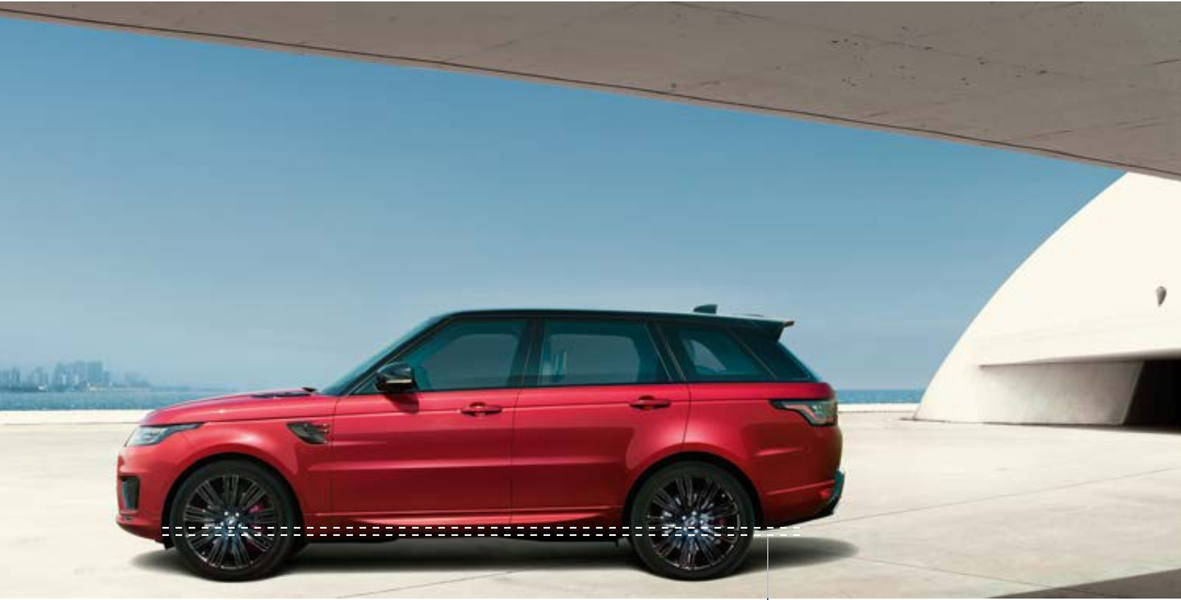 Также высота автомобиля может быть снижена на величину до 50 мм с помощью системы Access Height, чтобы обеспечить более удобную погрузку багажа. Она также позволяет зафиксировать подвеску на этом низком уровне, чтобы Range Rover Sport мог без проблем ездить на скорости до 40 км/ч по зонам с ограничениями высоты — например, на многоуровневых парковках.