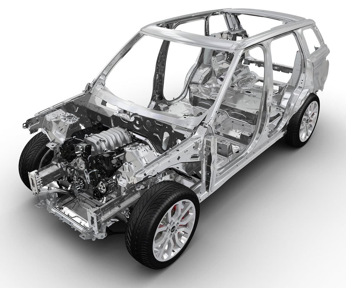 Как уже упоминалось ранее, Range Rover Sport стал первым внедорожником в своем классе с полностью алюминиевым кузовом, который на 39% легче стального. Переход на алюминий стал одним из важнейших шагов компании Jaguar Land Rover по оптимизации производства.
