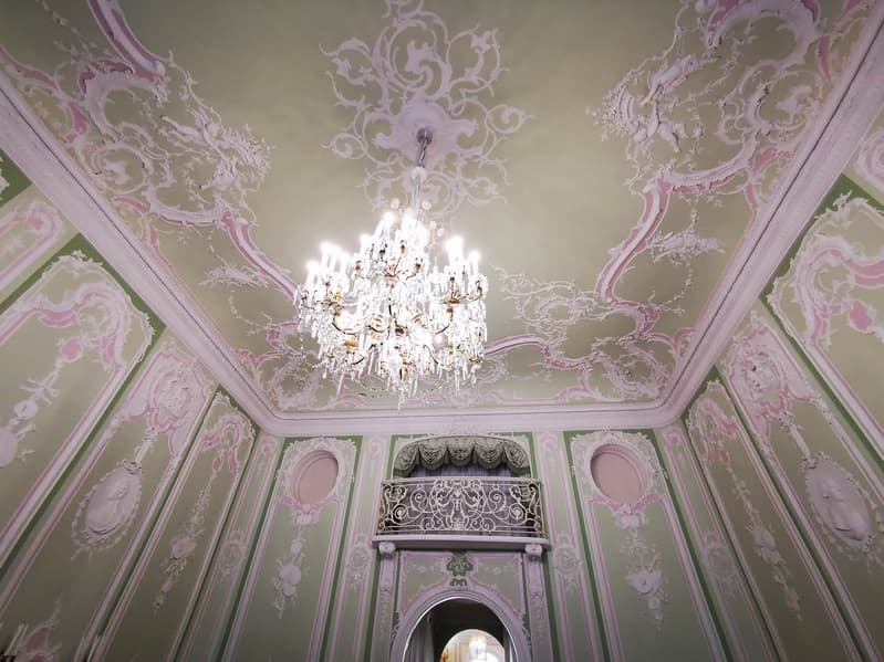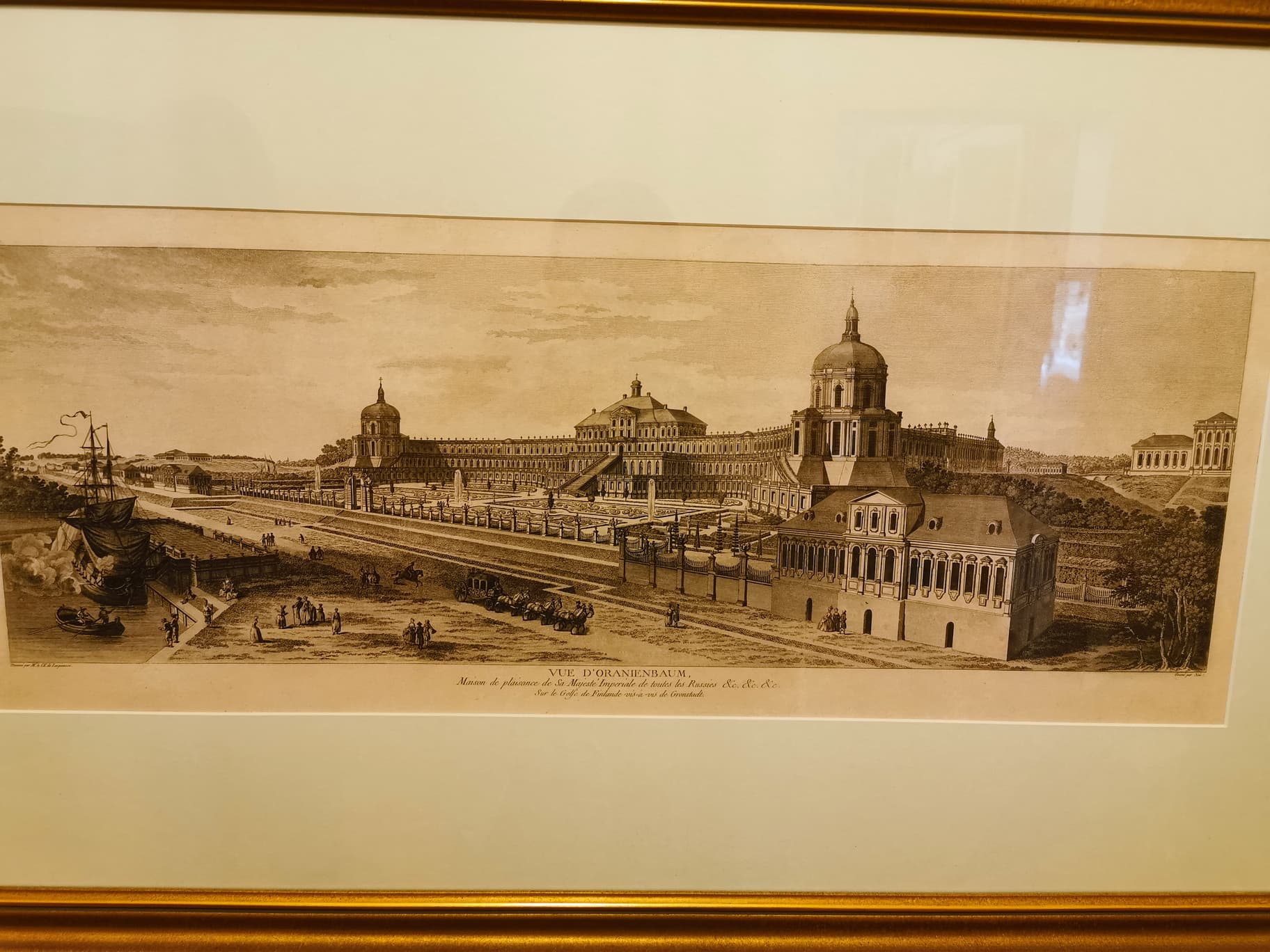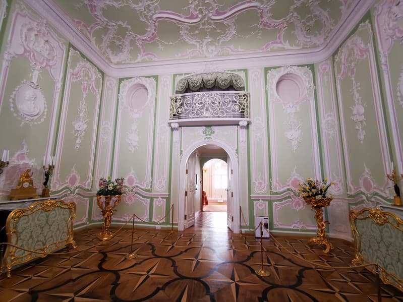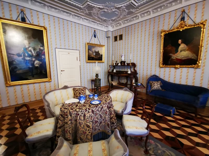 Величественный облик дворца, его грандиозный размах и богатые интерьеры вызывали восхищение и удивление. В усадьбе гостей ожидало множество «диковинок». Например, в центре восточной галереи когда-то располагалась «турецкая баня» со стеклянной крышей, которую посещал и сам император Петр I. Залы и жилые комнаты были декорированы росписью по штукатурке и на холсте, шпалерами, мрамором, даже свинцовые переплеты окон были позолочены, а стены многих комнат были облицованы голландскими и немецкими кафлями. Во дворце имелось два особых покоя, предназначенных для императора: спальня и передняя. Их декор был сравнительно прост, лишь камин и стены были облицованы голландскими плитками.