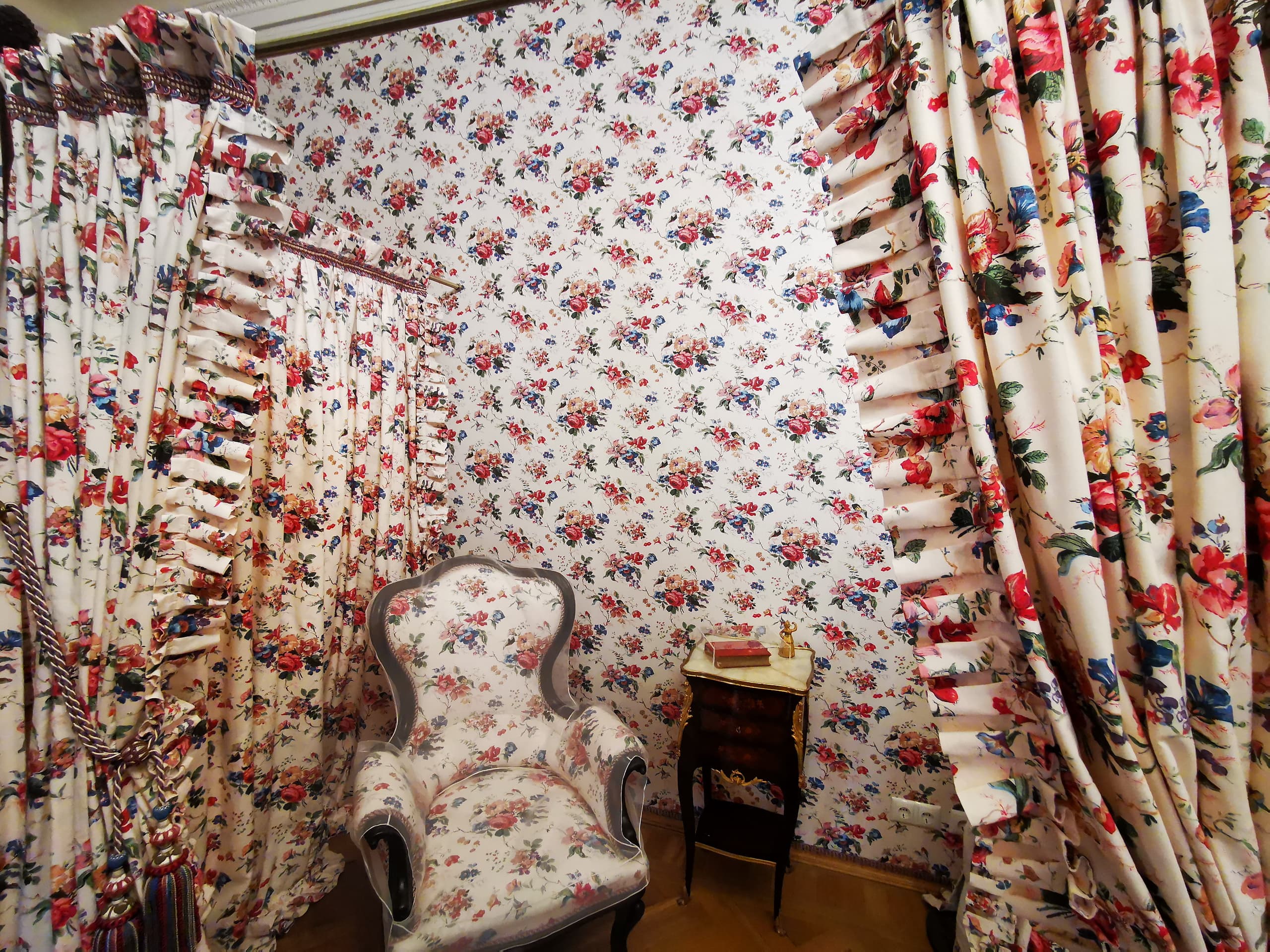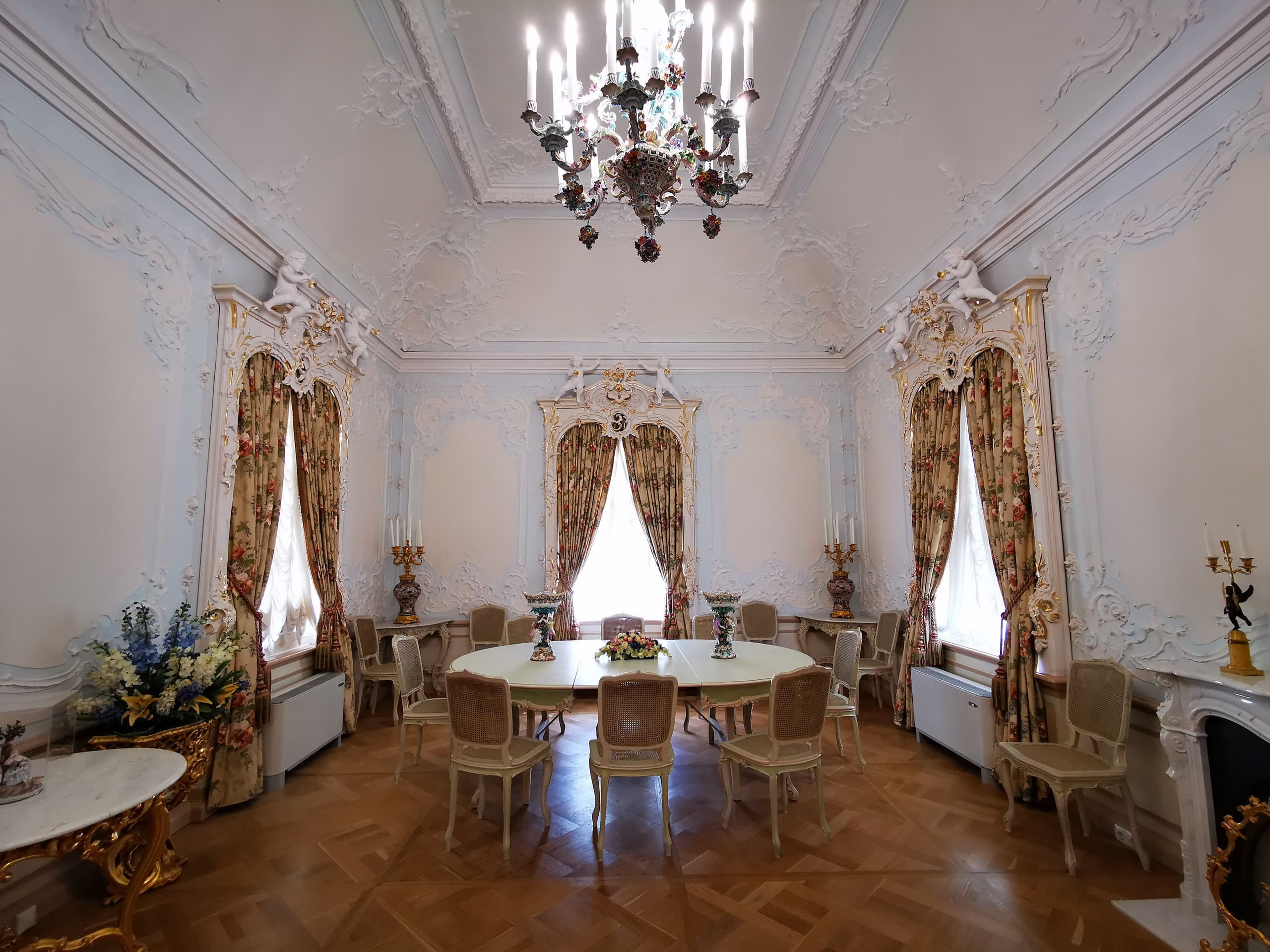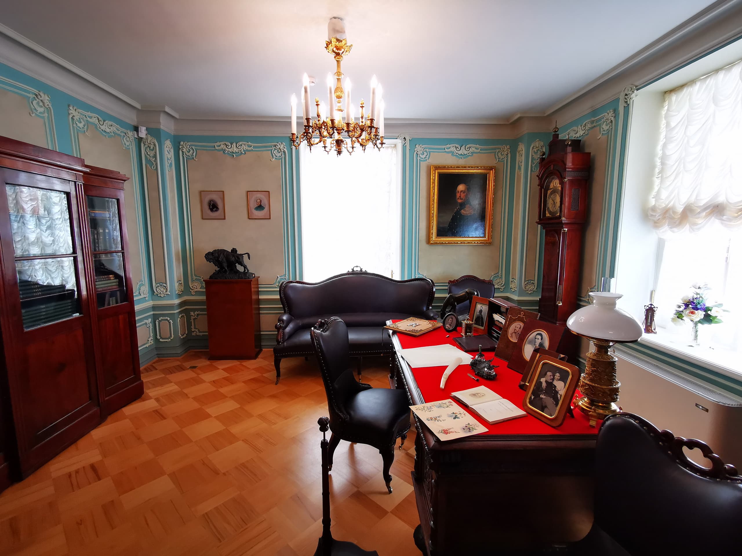 Величественный облик дворца, его грандиозный размах и богатые интерьеры вызывали восхищение и удивление. В усадьбе гостей ожидало множество «диковинок». Например, в центре восточной галереи когда-то располагалась «турецкая баня» со стеклянной крышей, которую посещал и сам император Петр I. Залы и жилые комнаты были декорированы росписью по штукатурке и на холсте, шпалерами, мрамором, даже свинцовые переплеты окон были позолочены, а стены многих комнат были облицованы голландскими и немецкими кафлями. Во дворце имелось два особых покоя, предназначенных для императора: спальня и передняя. Их декор был сравнительно прост, лишь камин и стены были облицованы голландскими плитками.