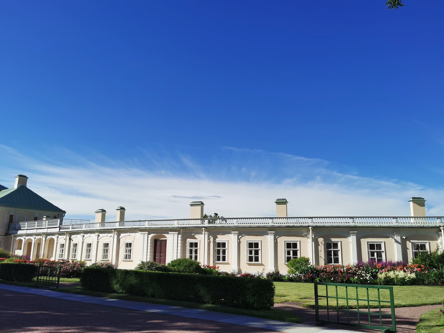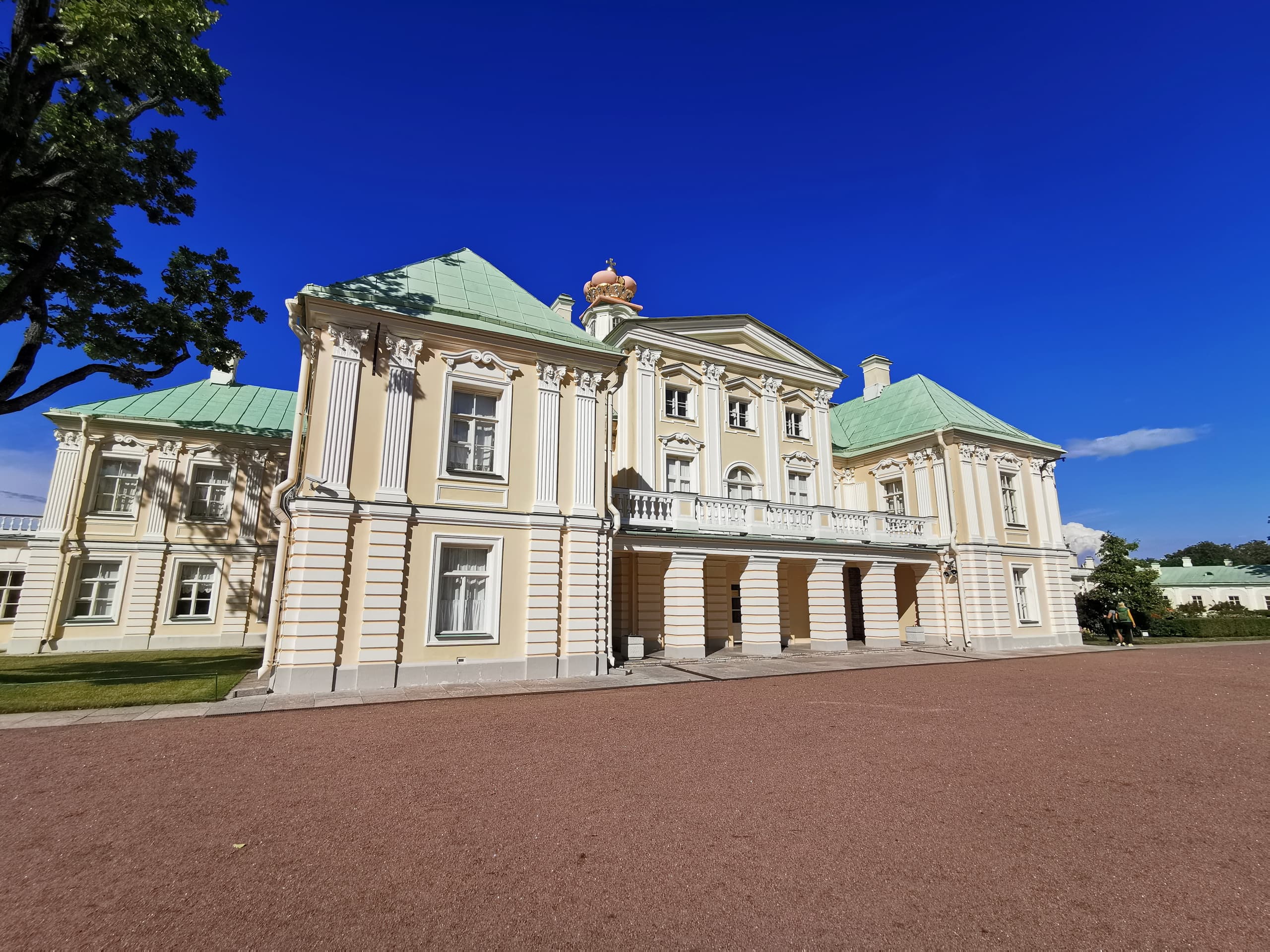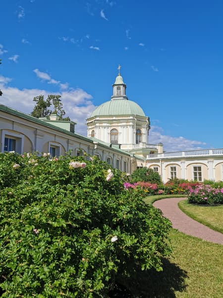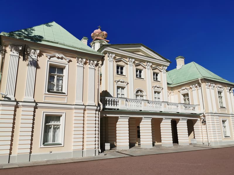 Возвращаясь в Москву, свой маршрут можно построить таким образом, чтобы после Кронштадта съехать с КАДа и заехать в город Ломоносов, он же Ораниенбаум — в дворцово-парковый ансамбль на южном берегу Финского залива в 40 километрах к западу от Санкт-Петербурга. В данной статье приведены фотографии лета 2019 года, потому как, конечно, летом этот объект смотрится наиболее выигрышно.