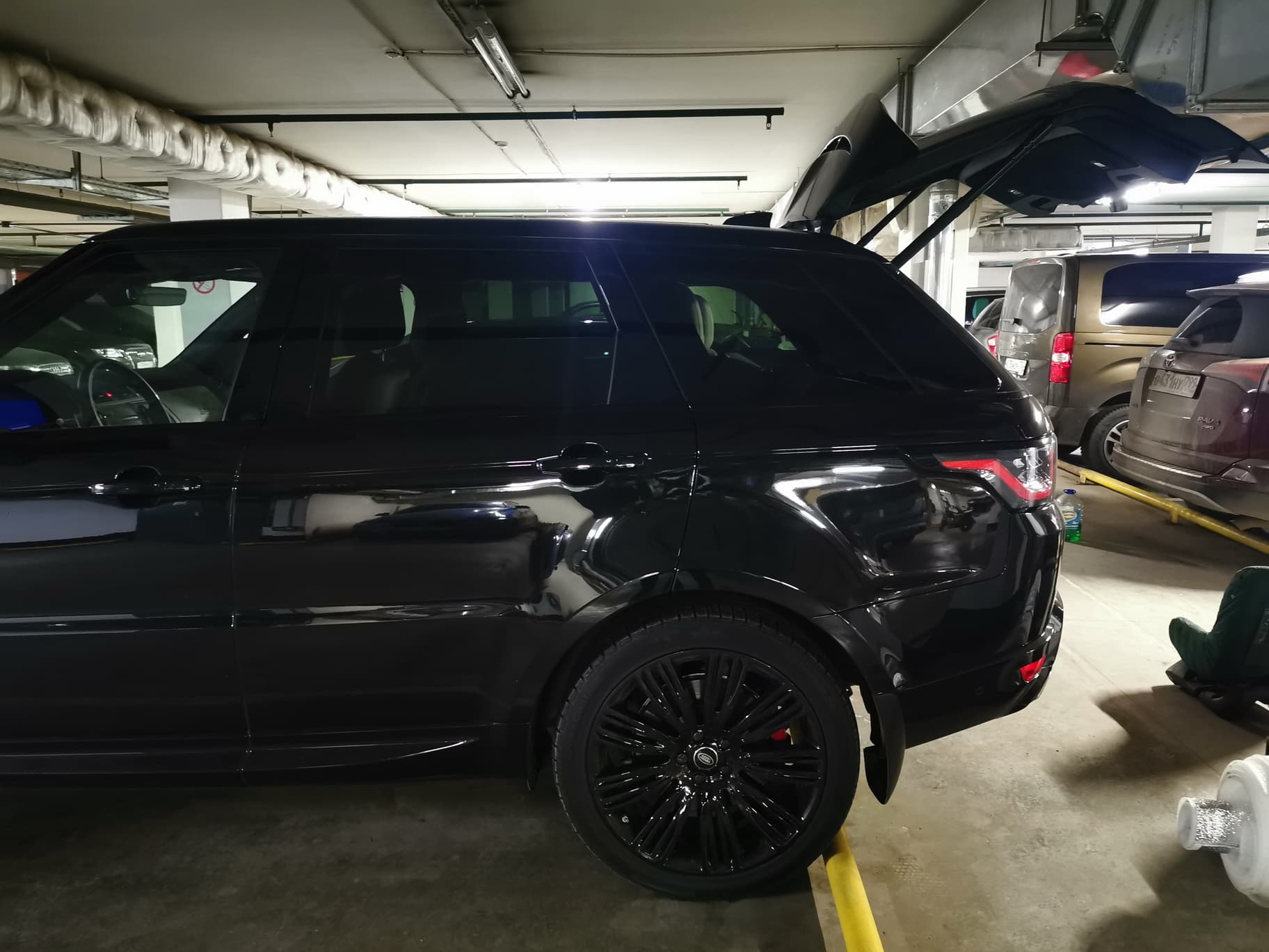 Интересный момент в том, что даже если купить базовую комплектацию SE (или HSE) и поставить ее рядом с самой «навороченной» версией Autobiography, то человеку, не разбирающемуся в вариациях RR Sport, будет крайне сложно обнаружить различия между этими двумя моделями. Только знающий человек обратит внимание на колесные диски, которые «в базе» 19-дюймовые, а у Autobiography они минимум на два дюйма больше (в нашем случае это 22-дюймовые легкосплавные колеса c 9 спицами стиля 9012 с отделкой Gloss Black), и на два выхлопных патрубка, «вживленных» в бампер. У дорогих комплектаций они имеют прямоугольную более спортивную форму, а у SE — «обычной» круглой формы. Всё. А при этом разница между этими двумя моделями может быть в 4-5 миллионов рублей.