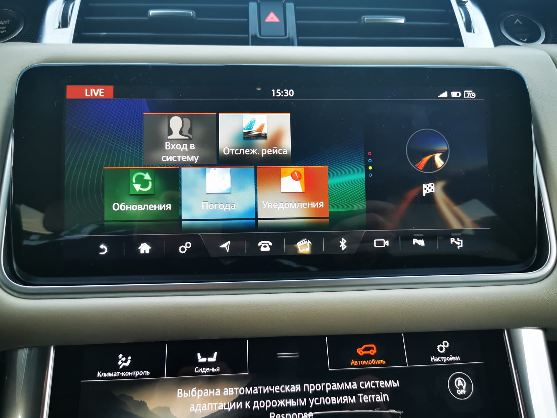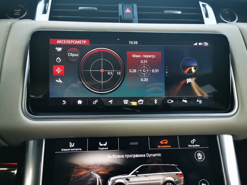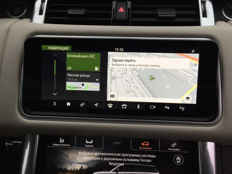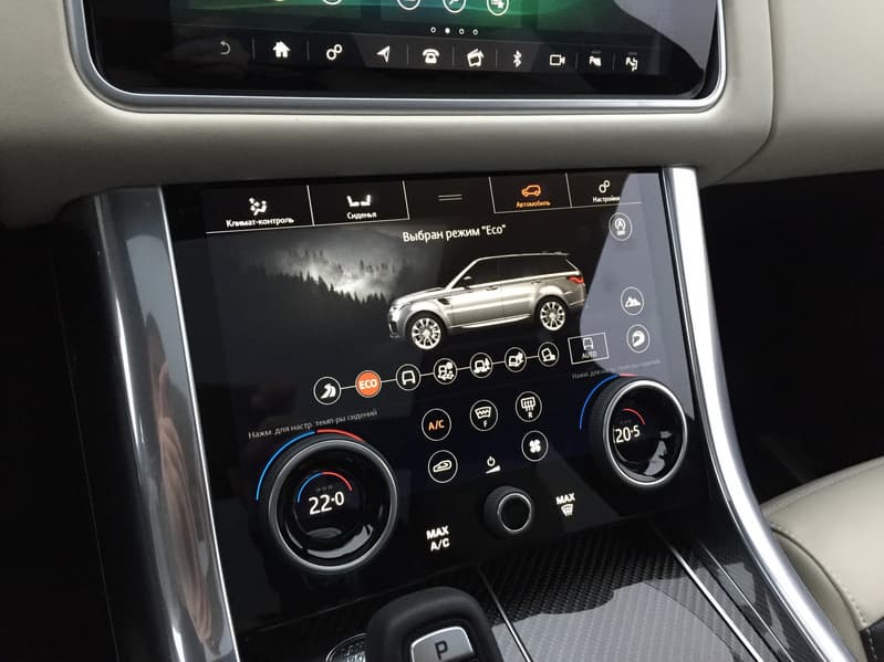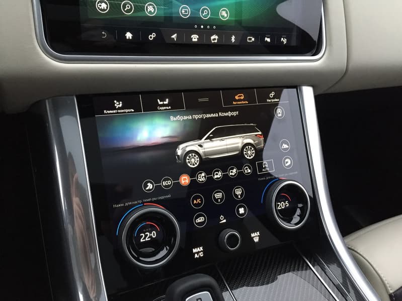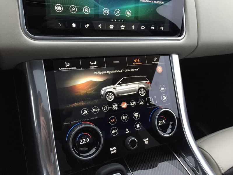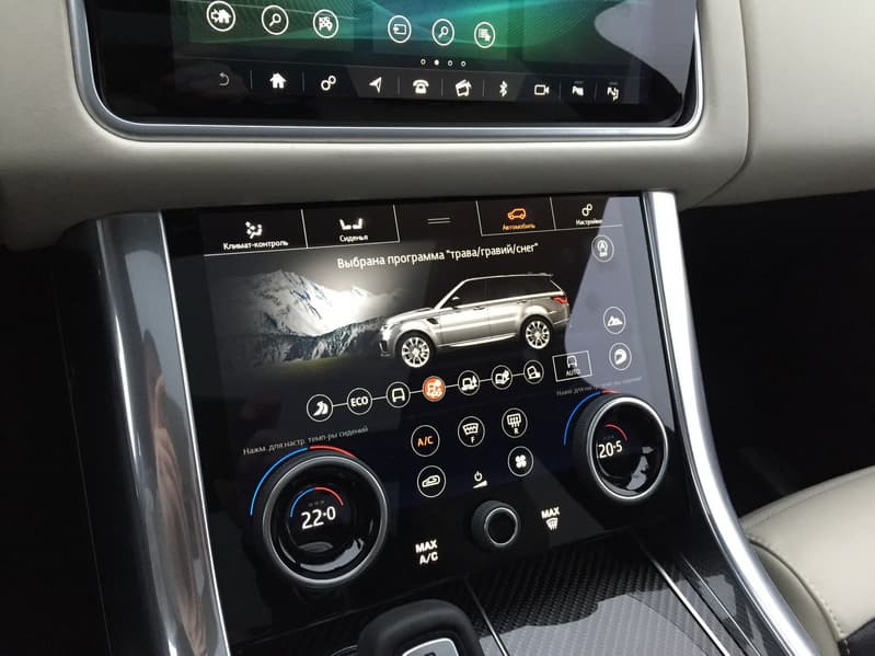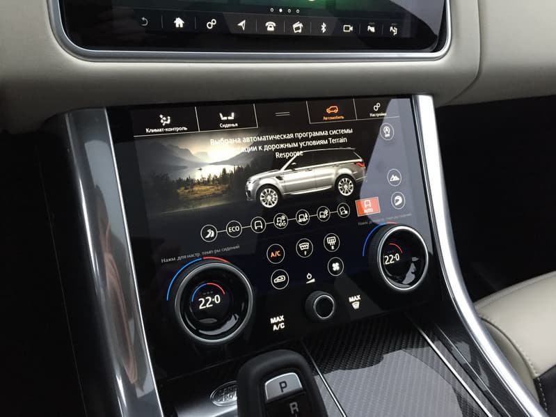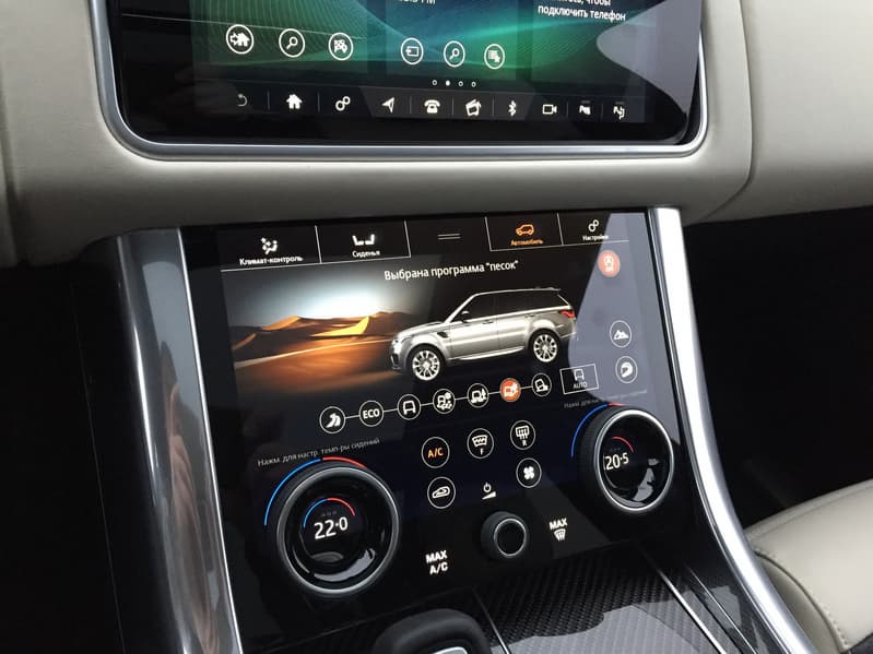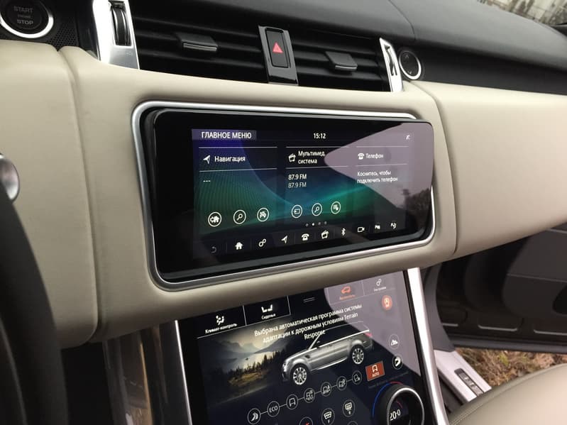 Возможности и принципы управления почти полностью идентичны тем, что мы описывали в материале про Jaguar XF, за тем лишь исключением, что дисплей в RR Sport более отзывчивый и чувствительный. Он сам по себе больше и, благодаря большей яркости и контрастности, менее подвержен засветке. Также стоит отметить более натуральную и приятную цветопередачу по сравнению с тем монитором, что установлен на «Ягуаре».