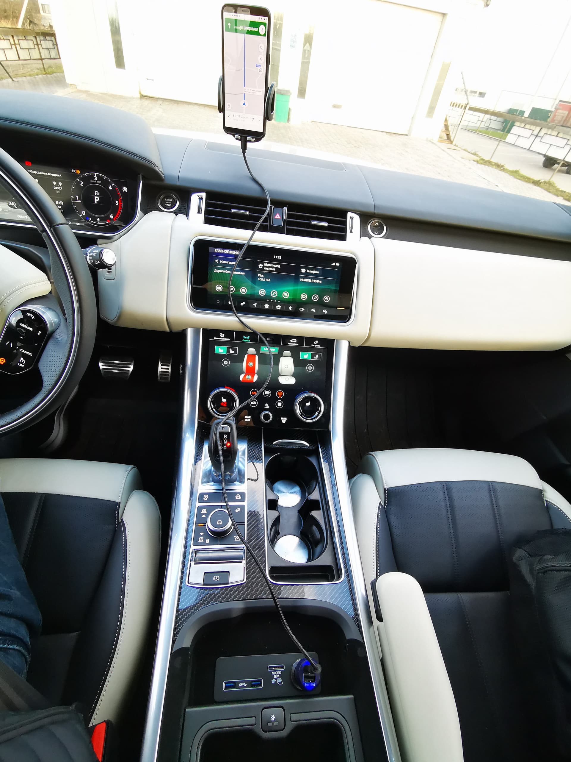 Интеграция всех дисплеев вокруг водителя снова, как и в случае с Jaguar, не оставила места для разъема прикуривателя или USB-порта. Опять ближайший разъем прикуривателя или USB-разъем с функцией подзарядки находится в подлокотнике, что предъявляет особые требования к длине USB-провода. Конечно, можно пользоваться бортовой навигацией или выводить информацию на большой монитор через Android Auto или Apple Car Play, но существуют ряд приложений, которые не оптимизированы для данных систем, и использование смартфона в этом случае более оправдано или попросту безальтернативно.