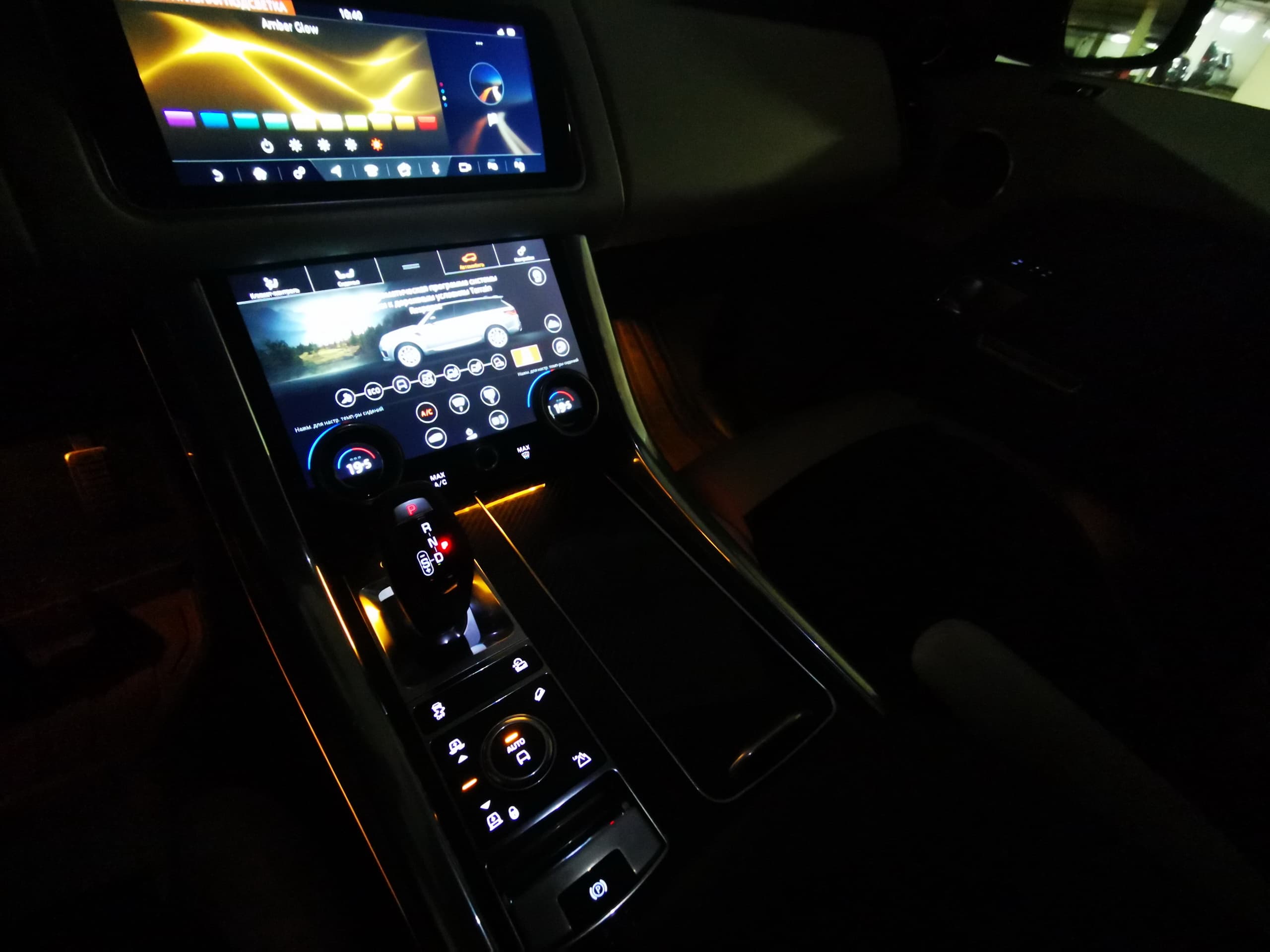 Верхний экран на центральной консоли может быть повернут на определенный угол, чтобы водитель лучше видел необходимую ему информацию. Нижний 10-дюймовый дисплей зафиксирован в одном положении и поддерживает такие задачи, как управление климат-контролем, положением сидений и техническими настройками.