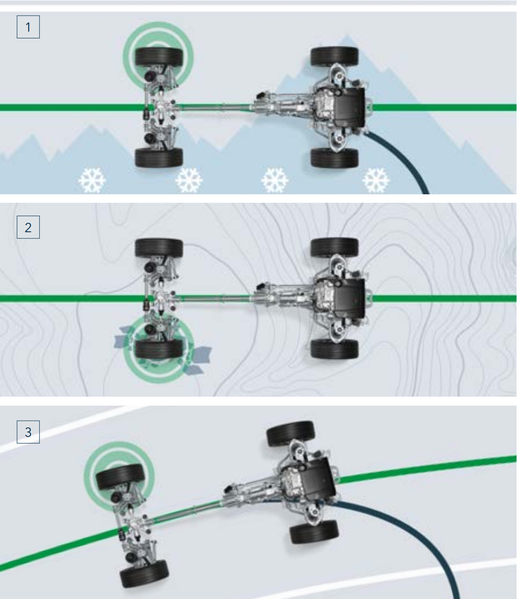 Еще более легкая система полного привода доступна на отдельных моделях линейки. Она также включает одноступенчатую раздаточную коробку с дифференциалом Torsen. Это обеспечивает распределение крутящего момента в пропорции 42:58 и позволяет сочетать хорошую динамику с маневренностью и управляемостью.