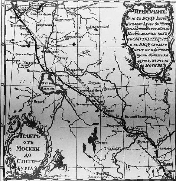 Необычайно подвижный Петр I и на лошадях передвигался очень быстро и мог добраться из Петербурга до Москвы за трое суток — для того времени рекордный показатель. Именно суток, так как в дороге царь находился и в ночное время. Обычно же путь занимал неделю с остановками на ночлег и переменами лошадей — в 1709 году расстояние между городами составляло 742 версты, на них приходилось девять ямских станций.
