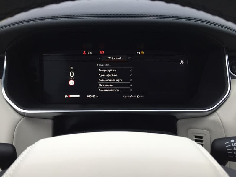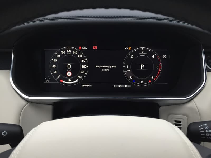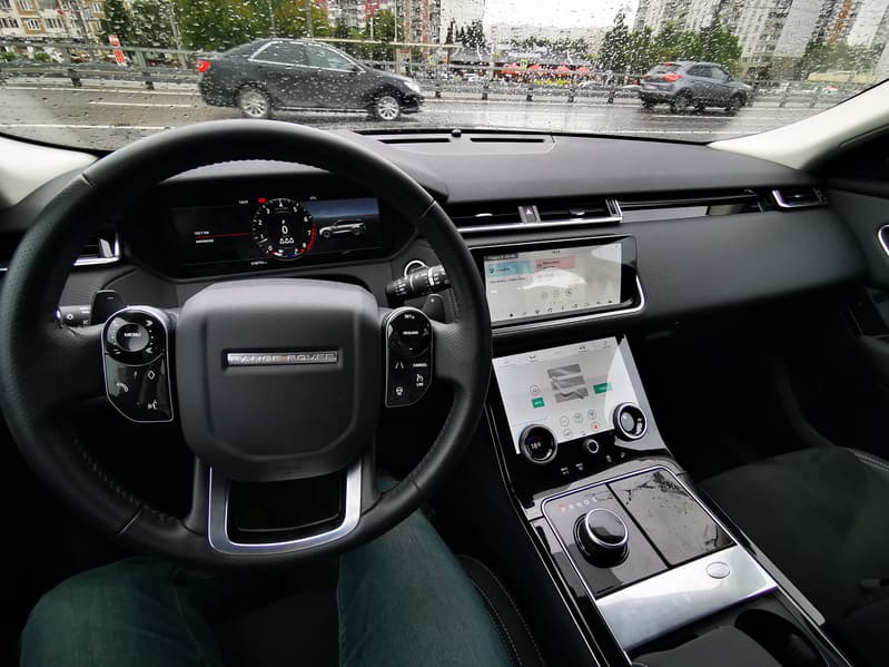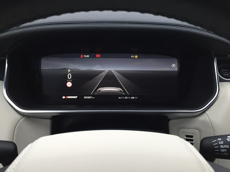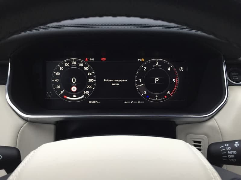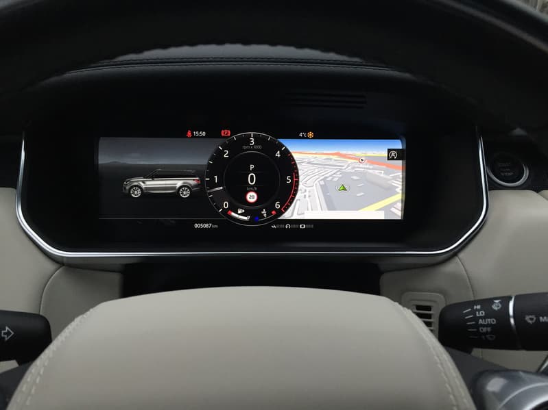 Третий 12-дюймовый интерактивный дисплей высокого разрешения с двойным циферблатом и настраиваемым внешним видом расположился на приборной панели. Цифровая приборная панель в рестайлинговый RR Sport также перекочевала с Velar.