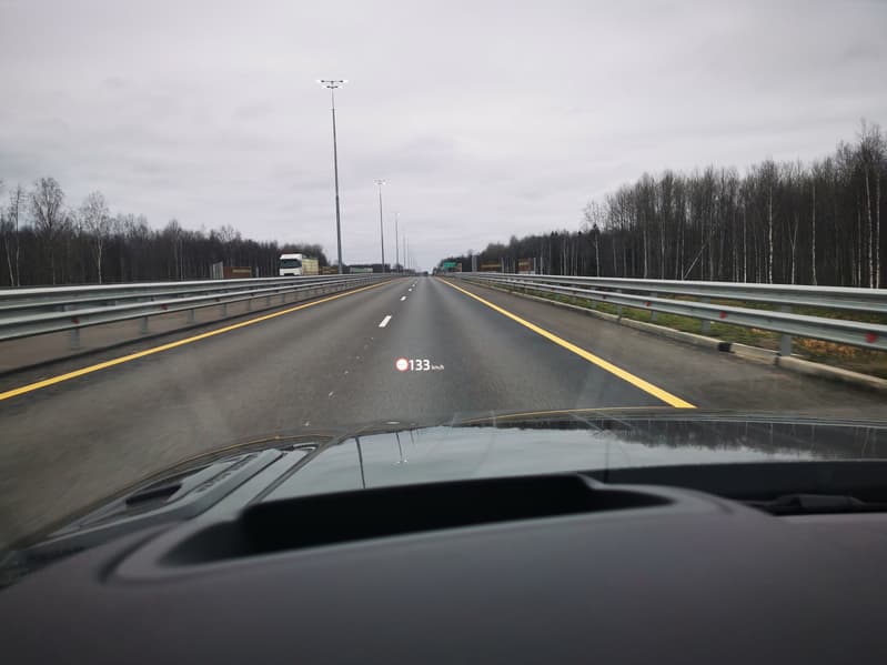 Проекционный дисплей нового поколения выводит необходимую информацию на лобовое стекло с помощью 10-дюймового цветного проектора с высокой четкостью и детальным разрешением. На лобовом стекле отображаются показатели скорости и рекомендации навигационной системы. Также система может отображать и другие данные, в том числе настройки адаптивного круиз-контроля или сигналы системы распознавания дорожных знаков, не отвлекая внимание от дороги.