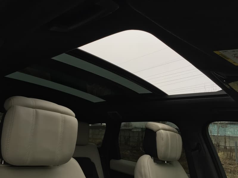 Если в случае Jaguar XF мы подвергали сомнению оправданность наличия люка, то в Range Rover панорамная крыша придает еще больший внутренний объем и без того немаленькому автомобилю. Шторка панорамной крыши может открываться и закрываться с помощью передовой системы управления жестами, которая способна улавливать движение рук.