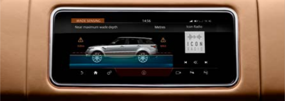 Высота Range Rover Sport может быть и, наоборот, увеличена для езды по бездорожью — благодаря двум дополнительным опциям Off-Road Ride Height 1 и Off-Road Ride Height 2. Первая настройка поднимает автомобиль на 40 мм для скоростей до 80 км/ч и хорошо подходит для быстрой езды по не слишком экстремальным дорогам, например проселочным грунтовкам. Для преодоления более сурового ландшафта или даже водных преград подойдет режим Off-Road Ride Height 2, который поднимает автомобиль на целых 75 мм. Эту высоту также можно поддерживать на скорости до 80 км/ч.