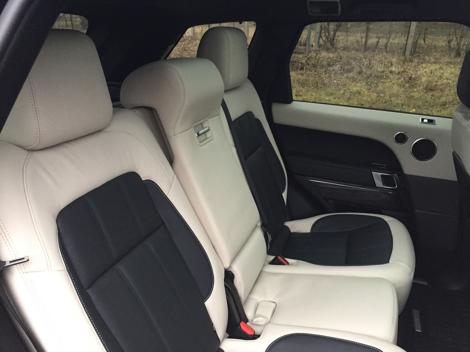 Задний ряд обновленного Range Rover Sport второго поколения весьма просторный. На диване с комфортом усядутся два крупных мужчины или же трое подтянутых, но среднему седоку придется устраиваться на «жердочке», в виде которой сделана промежуточная часть галерки.