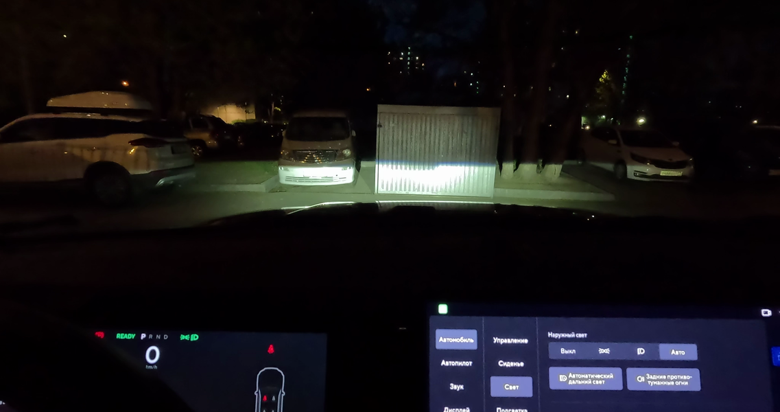 Световые приборы у Rox 01 светодиодные, не матричные, фары повороты не подсвечивают и вообще — просто светят. Ближний свет включается автоматически, им даже нельзя управлять рычагами за рулем. За дальний отвечает левый рычаг, и совершенно точно стоит сразу отключить автоматическое управление им. На трассе с бетонным отбойником Rox 01 смело включал дальний при множестве машин на встречке и вдалеке (но еще в прямой видимости) в попутном направлении, и другим водителям это явно не нравилось. Но качество самого света очень хорошее, а у ближнего — четкая граница.
