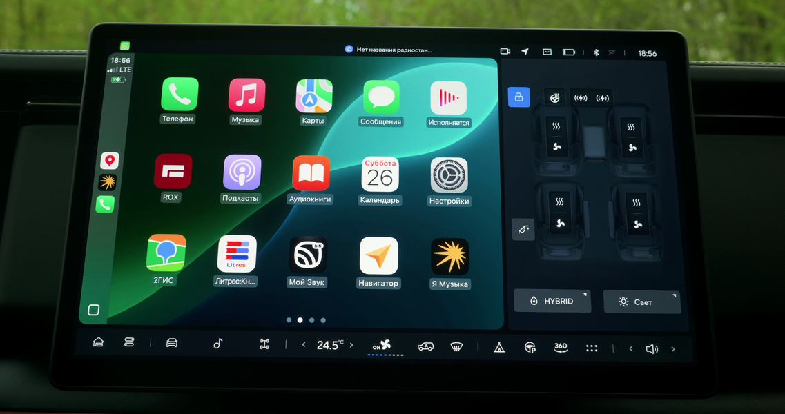 Если к мультимедийной системе Rox 01 подключен iPhone, то главный экран делит пространство на дисплее с окном CarPlay. Подключение почти каждый раз происходит предельно незаметно. Я просто сажусь в машину и сразу могу включить музыку со смартфона и поехать по маршруту, который проложил в «Яндекс Картах». Один раз случилась осечка, когда неподалеку от машины я подключился к другой Wi-Fi-сети (а терминал CarPlay для полноценной работы запускает хотспот). Как ни странно, не помогло разбить связь и сопрячь всё снова, а помогло нажать на иконку CarPlay в списке подключений Bluetooth. Android Auto почему-то не поддерживается, по крайней мере, на том «борту», который мы тестировали (хотя некоторые дилеры почему-то указывают в списке функций и Android Auto тоже), но есть альтернатива — CarbitLink.