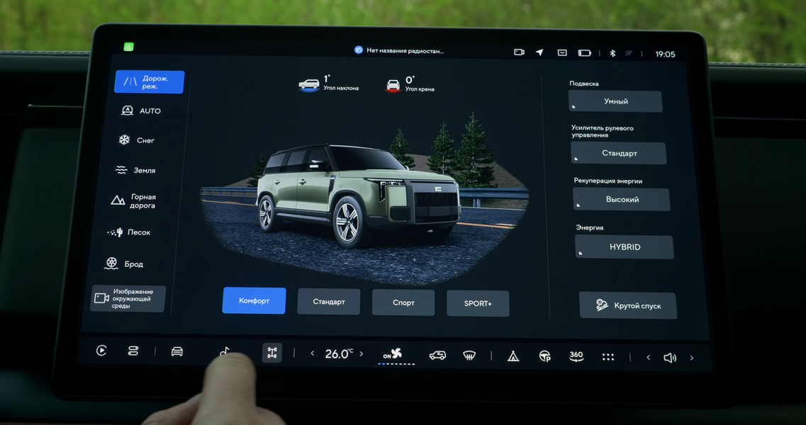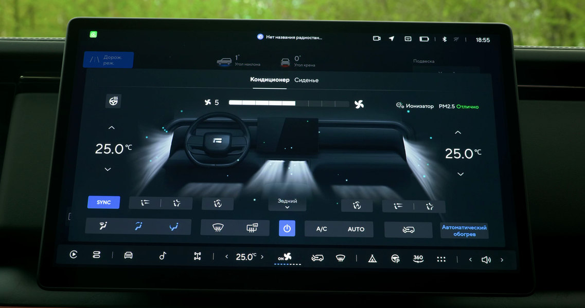 К богатству настроек климат-контроля вопросов нет, а вот к переключению между нагревом и охлаждением всё же есть. При выставленных 26 градусах и далеко не тропическом климате в машине (тест проходил в начале мая), из воздуховодов мог идти холодный воздух. Приходилось задирать температуру до 30. Понять русскую весну китайскому кондиционеру сложно.
