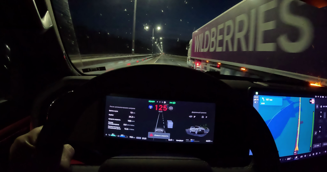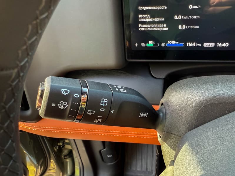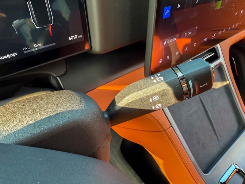 За счёт того же компьютерного зрения Rox 01 может играть в автопилот. У него второй уровень автономности, то есть машина может контролировать руль, ускоряться и тормозить, но водитель должен постоянно контролировать ситуацию. Автопилотом оно названо в меню, а по сути это адаптивный круиз-контроль с плюшками. Поддерживать скорость машина может, держать полосу тоже может. Можно даже перестраиваться поворотником, но потом его нужно выключить рукой. А если перестраиваешься в кого-то, не обратив внимание на машину в слепой зоне, то руль начинает дрожать. Дистанцию машина держит, тормозит и разгоняется для этого сама, причем расстояние можно настраивать на рычаге за рулём, есть три варианта.