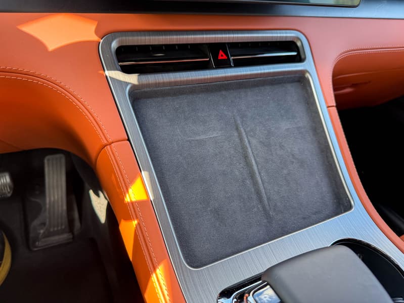 Водитель и передний пассажир могут заряжать телефон на беспроводной зарядке. Но почему-то машина посчитала, что iPhone 16 Pro Max не достоин этого, и вообще называла его металлическим предметом и просила убрать. А вот Samsung Galaxy S20 у пассажира заряжался без проблем. Еще из удобств в салоне — панорамная крыша с двумя окнами. И это именно она, ни один из них не сможет стать люком, как бы ни старался.