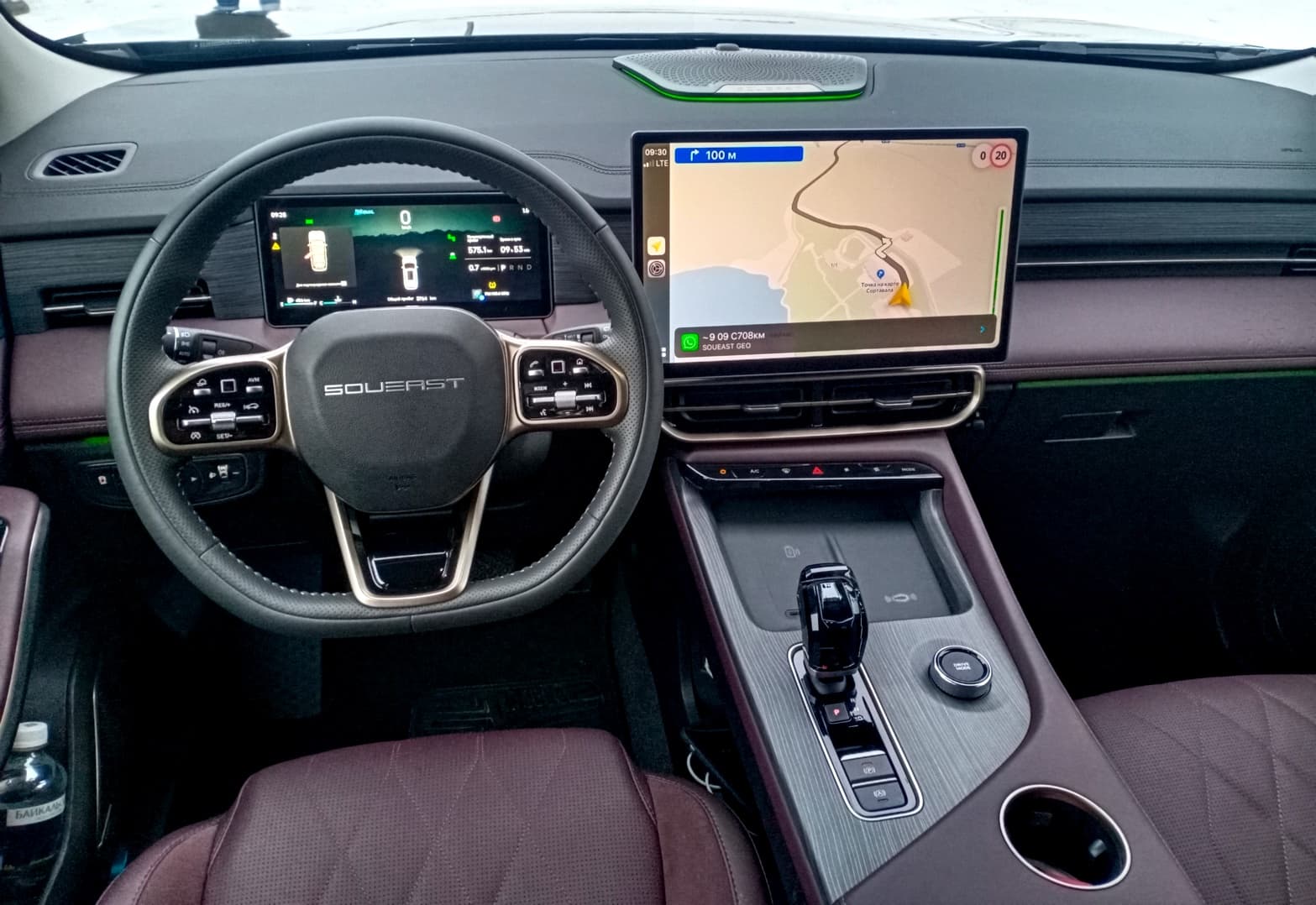 Вершина возможностей Soueast S09 — это Premium за 4,1 млн рублей. Здесь уже, как мы сказали, полный привод и 8АКПП. Впридачу — боковые занавески безопасности, панорамная крыша, дверь багажника с сенсорным открытием, приветственная световая анимация, звукоизолирующие стекла передних дверей, атмосферная подсветка, вентиляция переднего пассажирского сиденья, водительское кресло с электрорегулировками в 8 направлениях, салонное зеркало заднего вида с автозатемнением, подстаканники с подъемным механизмом, задний независимый кондиционер, адаптивный круиз (ACC), ассистент движения в пробках, автоматическое управление дальним светом.