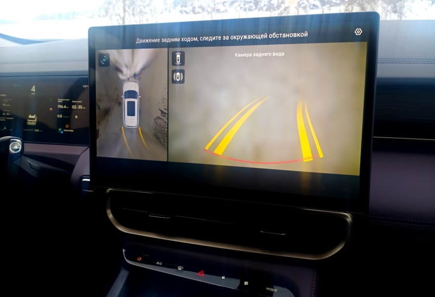 Центральный экран — огромный, 15,6 дюйма. Нужен ли такой «телевизор» на коротком расстоянии от глаз водителя и переднего пассажира — большой вопрос. Но в Китае уже сложился определенный тренд, и ему принято следовать. Все привычные и наиболее востребованные функции, естественно, «зашиты» в «гаджет». Видимо, в Поднебесной заигрались в цифровизацию и забыли, как получать сироп под названием «человеческое внимание», чего всем нам очень хотелось бы. В физическом исполнении оставили лишь несколько сенсорных клавиш управления климатической системой и аварийной сигнализацией.