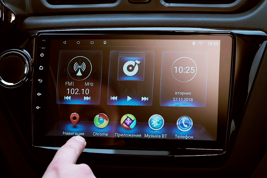 Управлять устройством можно как посредством сенсорного экрана, так и с помощью кнопок на рулевом колесе.