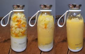 С помощью портативного блендера можно приготовить смузи, суп-пюре и даже ягоды, протертые с сахаром, и не только приготовить, но и взять их с собой прямо в том же блендере — нужно только поменять док-станцию с ножом на дно без мотора. Блендер работает на аккумуляторах, так что может пригодиться и в фитнес-центре, и при выезде на природу, и если вдруг вам на даче отключили электричество.