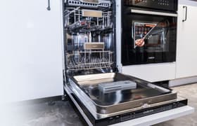 Если на кухне мало места для посудомоечной машины шириной 60 см — это не повод отказываться от нее вообще. Просто надо выбрать узкую модель — например, Garlyn GDW-1045. Она понравилась нам удобной конструкцией полок, наличием третьей корзины для столовых приборов, хорошим набором встроенных программ и дополнительных опций и высокой экономичностью. Семи программ для мытья посуды хватит на все случаи жизни. Стоило бы добавить разве что специальную ночную: при работе стандартных эта модель шумновата.