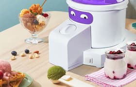 Этот полуавтоматический прибор имеет две функции и с обеими справляется хорошо, но требует от пользователя определенного участия. В режиме мороженого прибор только перемешивает, так что перед применением чашу с хладагентом и саму смесь нужно обязательно охлаждать. Для получения йогурта достаточно залить теплые ингредиенты в чашу, накрыть крышкой и через 6-8 часов переставить готовый кисломолочный продукт в холодильник.