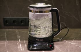 Электрочайник Lex LXK 30010-2 с простейшим управлением в виде единственной механической кнопки быстро и довольно тихо кипятит воду, имеет скромные габариты, небольшой вес и удобный эргономичный корпус. У него аккуратная сборка и современный лаконичный дизайн, есть исправно срабатывающая защита от включения без воды. Всё перечисленное делает его комфортным для повседневного применения. Завершает список плюсов приятная низкая цена. Также отметим необычно маленький объем — всего 1,2 литра. Такие чайники, на самом деле, достаточно востребованы на рынке, поскольку отнюдь не всем нужны сразу 1,5-1,7 л кипятка.