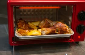 Zixin 104 — очень компактный бюджетный жарочный шкаф никому не известного производителя. Устройство с 6-литровой камерой обладает мощностью 600 Вт, имеет классическую для мини-печи конструкцию, всего два тэна и простое механическое управление. Удивительно, но в этой малютке действительно можно готовить. Несмотря на очень скромные габариты и противень как из игрушечного набора, мы успешно запекли в Zixin 104, в числе прочего, килограмм мяса и испекли кекс весом 600 г.